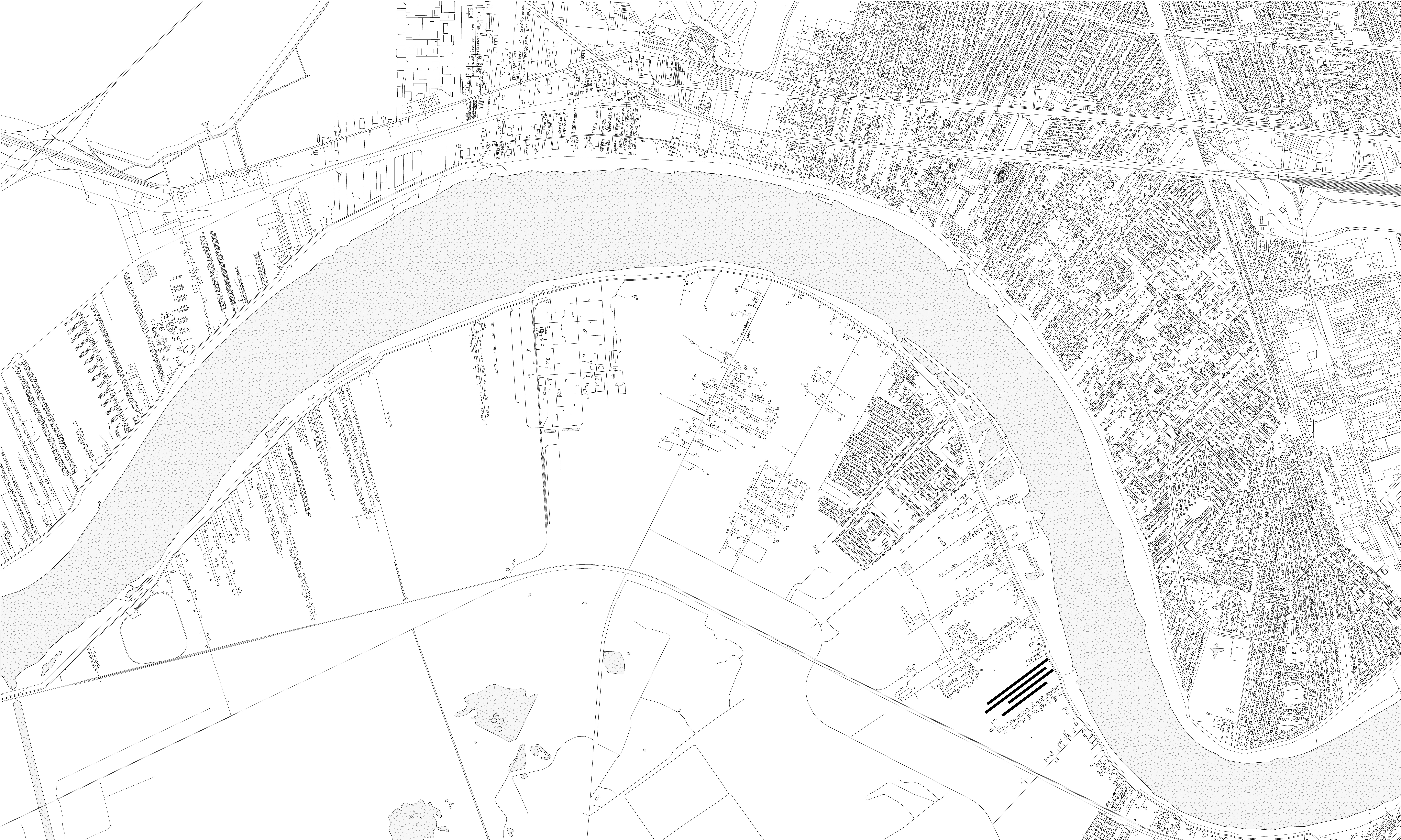Multi-generational housing is not a new concept for American housing, but it’s popularity at any given time has always been tied to American politics and economics. The introduction of 20th century programs like social security and the economic boom post WWII showed a decline in popularity, however issues like the pandemic in recent years and the predicted end of social security indicate a bigger future for multi-generational living. But what does this mean for people without established generations of family? Beginning with a series of scenarios exploring the various possible scales of multi-generational housing, these narratives are complicated by an investigation into various American housing typologies. Looking closely at the Dogtrot, the Plantation House, and the Shotgun, a number of distinguishing characteristics can be extrapolated and rearranged. Setting this new proposal in New Orleans, caught between the rural plantations and the urban density of downtown, the project seeks to provide density in the burgeoning neighborhoods that are quickly being devastated and overrun by encroaching industrial infrastructure, while protecting the scale of the neighborhood.