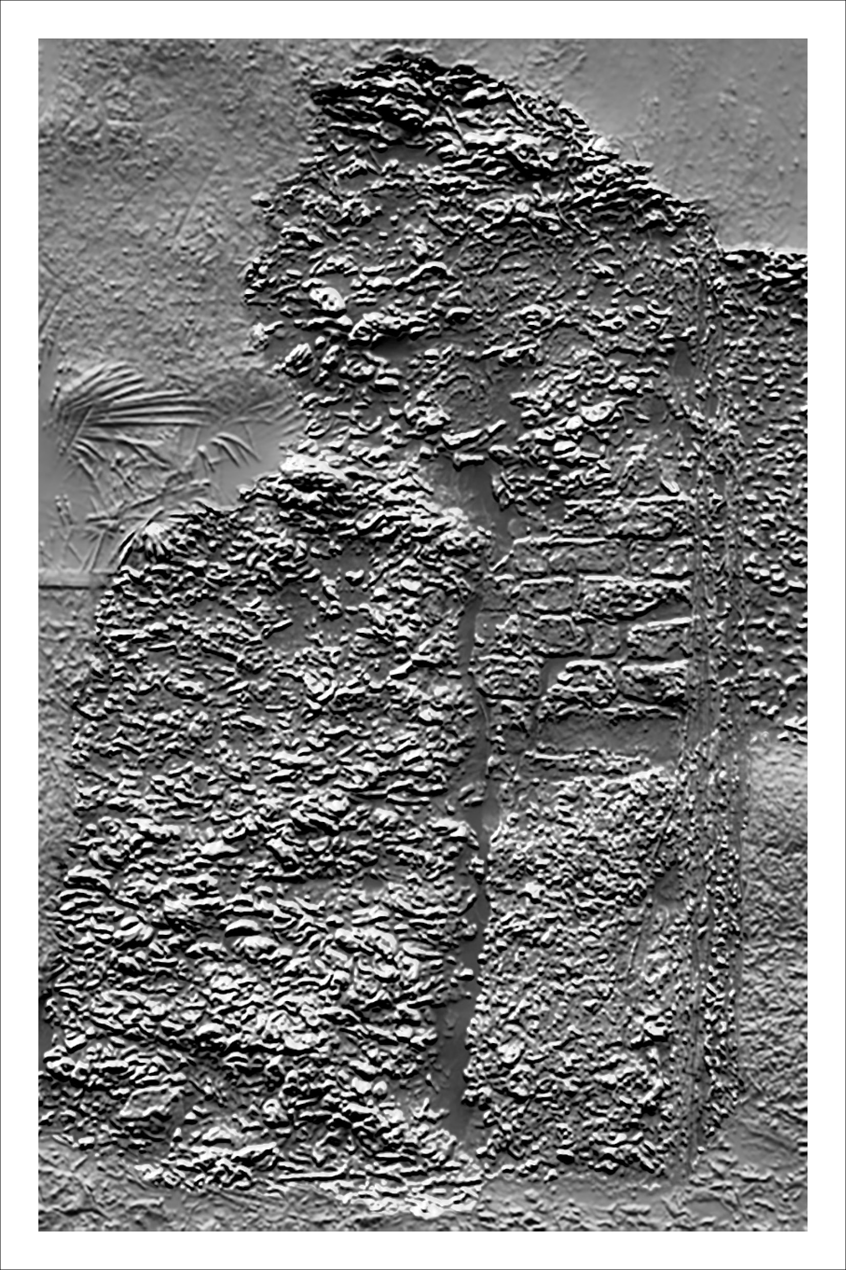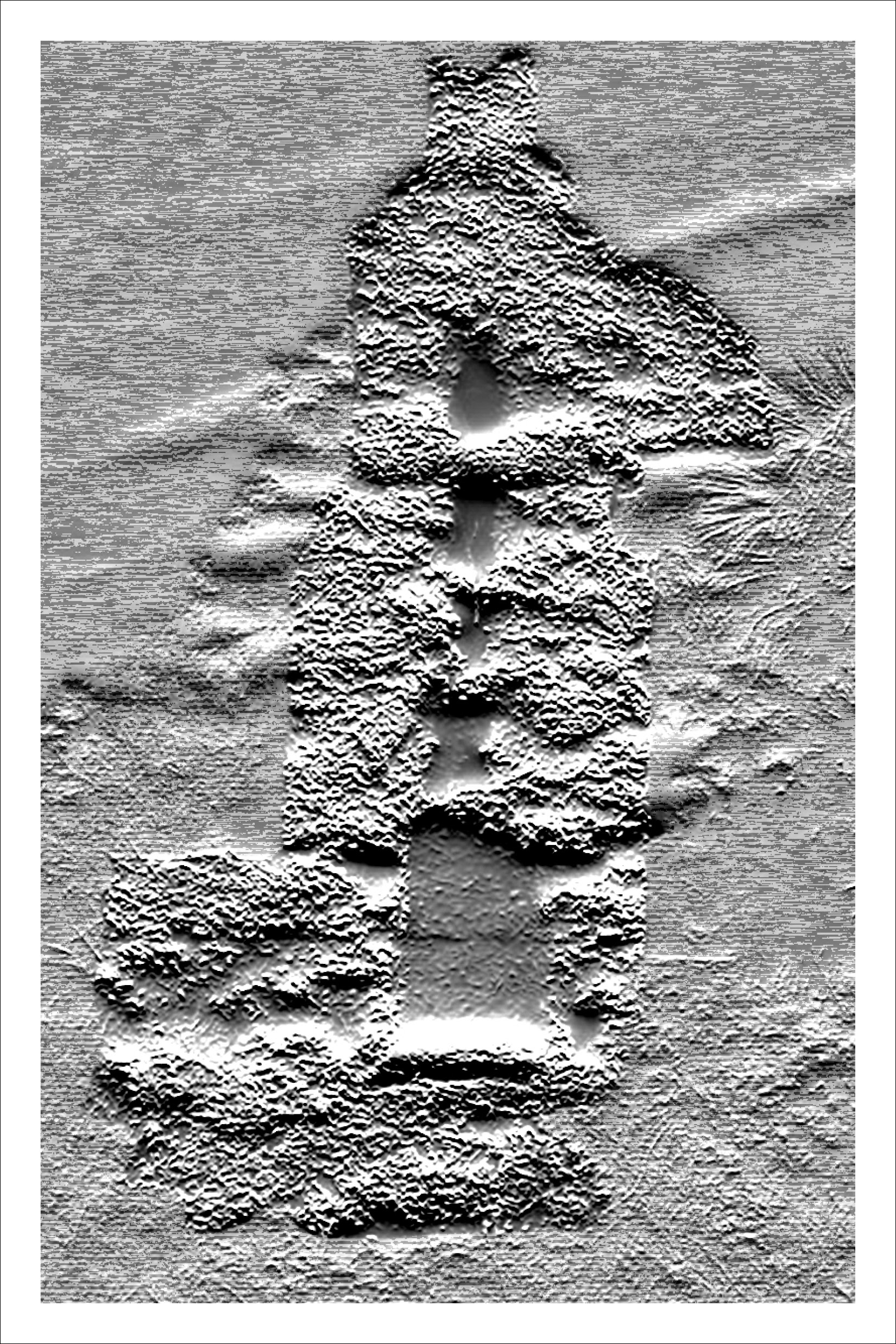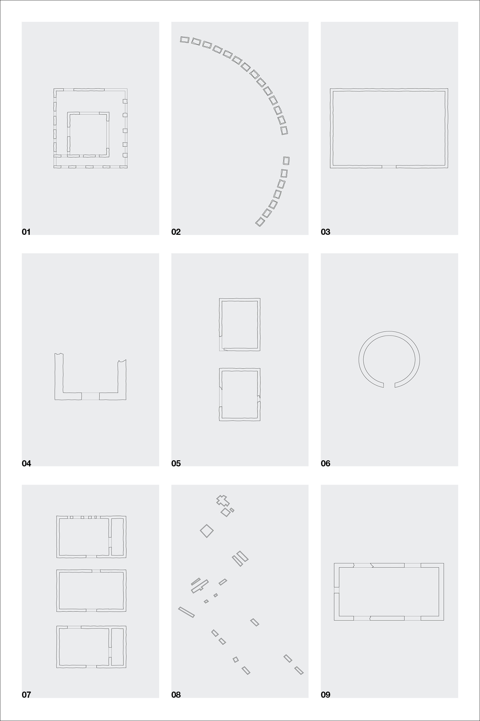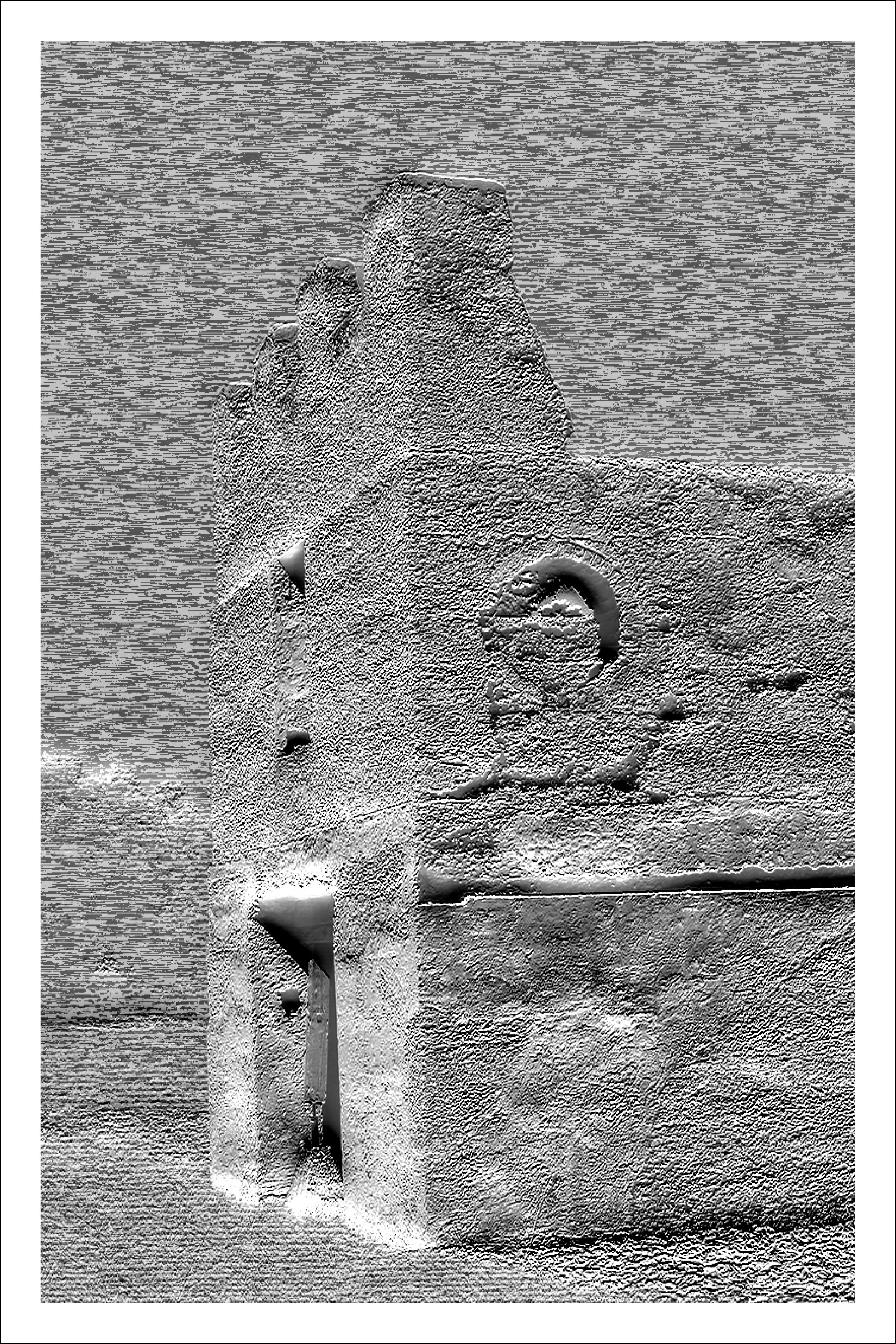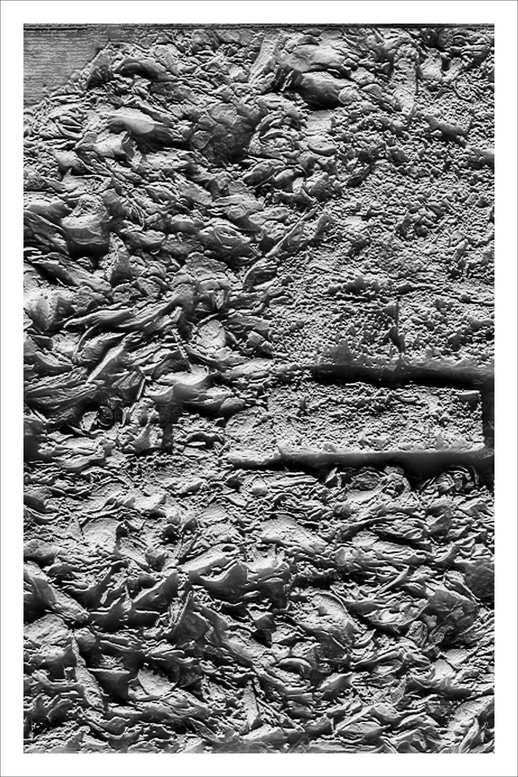 Inspired by Beverly Buchanan’s work with tabby concrete in several of her art installations, we chose to further research the history of the material in the South, specifically its ties to slavery and the subsequent meaning it lends to Buchanan’s work. Over the course of our research, we became primarily interested in the inherent rough and unfriendly texture of the material, and its devolution over time as it decays and its roughness intensified. The result was a collection of loose pages with no implied hierarchy or order — each an interpretation of a different tabby ruin’s scale of roughness — and a bibliography of references, emphasizing the hidden nature of the ruins, both in physical location and absence in historical texts.